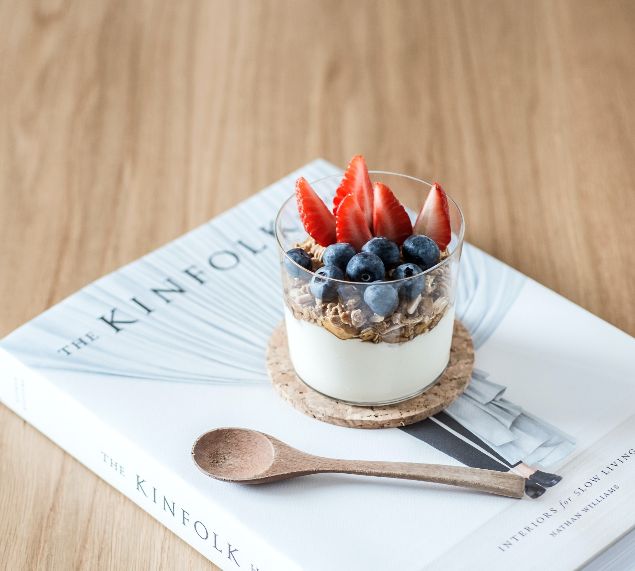 그릭 요거트에는 칼슘, 프로바이오틱스, 비타민 B6와 B12와 같은 필수 영양소로 가득 차 있어 뼈 건강을 돕고, 소화를 돕고, 건강한 내장을 촉진합니다. 또한 단백질 함량이 높아 근육 회복과 발달에도 도움을 주어 운동 후 섭취도 좋습니다.