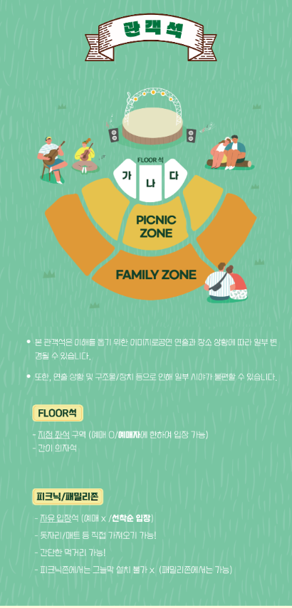 PICNIC석, FAMILY석은 매트나 돗자리 등을 가져 오셔야 합니다.